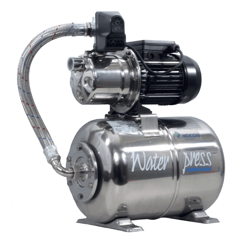 This compact yet powerful booster set features a robust Jet Inox self-priming pump with a corrosion-resistant stainless steel body and durable technopolymer internals (impeller, diffuser and venturi). The integrated 25-litre stainless steel pressure vessel works intelligently with the factory-calibrated pressure switch to maintain consistent water delivery whilst minimising pump cycling and energy consumption.